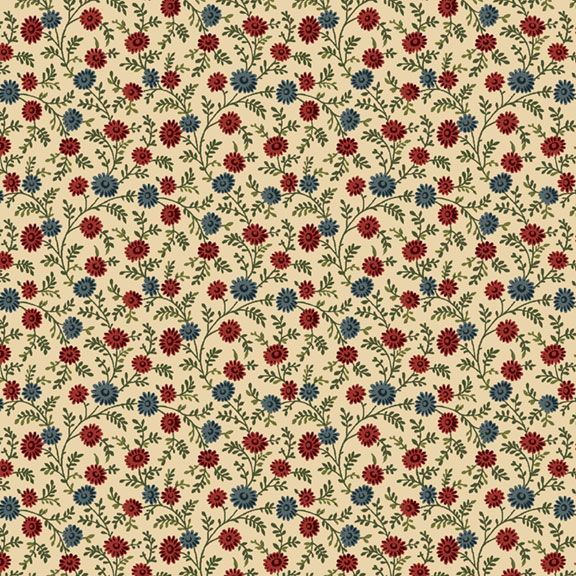 Inky blue, slate, butterscotch, sage, and garnet mingle with warm neutrals to capture the spirit of gatherings past, while elegant florals, leafy vines, and a distinctive wallpaper stripe add charm and authenticity. Blocks like Tree of Life, Ohio Star, and Spool Blocks are reimagined with thoughtful fabric placement, creative use of stripes, and fussy-cut florals for a quilt that’s as engaging to sew as it is beautiful to display.