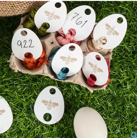 Count all you want with these egg-shaped floss drops, as long as they are stitch counts! These cute Farm Fresh Eggs Floss Drops are made with durable plastic and have two holes for floss and floss rings. These floss drops are reusable and easy to label with floss number stickers. Includes 20 floss drops.