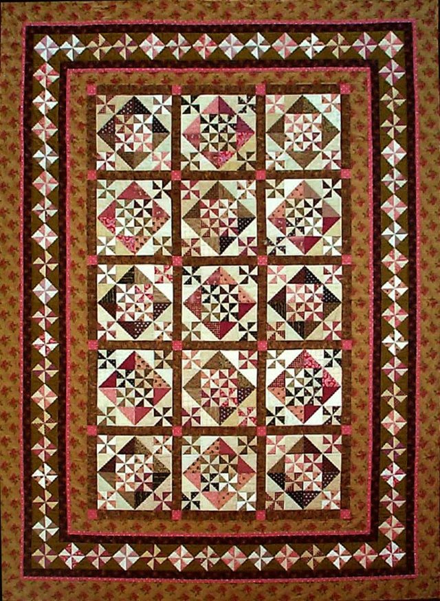 Celebrate the "sweet" colors of bubble gum pink, cinnamon, brown sugar, and cotton candy in this visually fun quilt by Sue Garman.? The finished quilt measures 68 by 96 inches.?